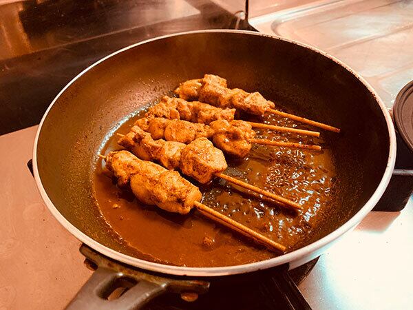スパイスソースを肉に絡めると、よりいっそう美味しくお召し上がり頂けます。